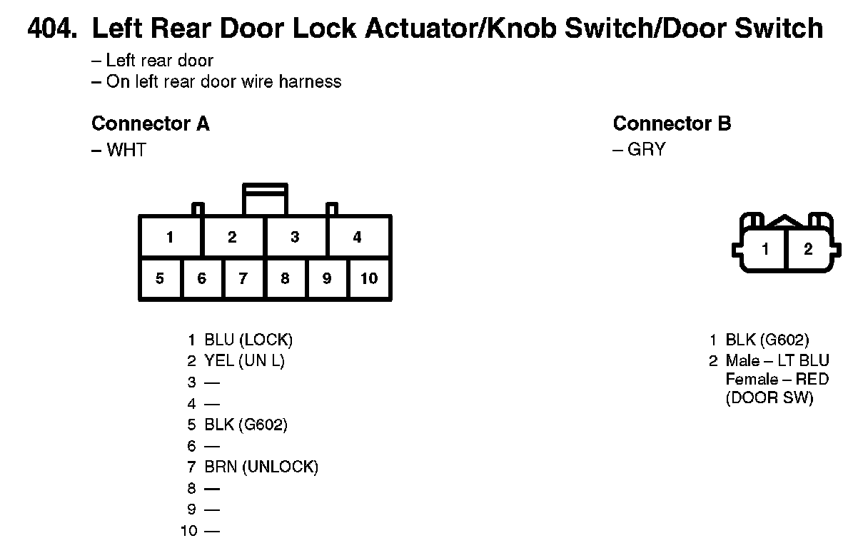 404. Left Rear Door Lock Actuator/Knob Switch/Door Switch: