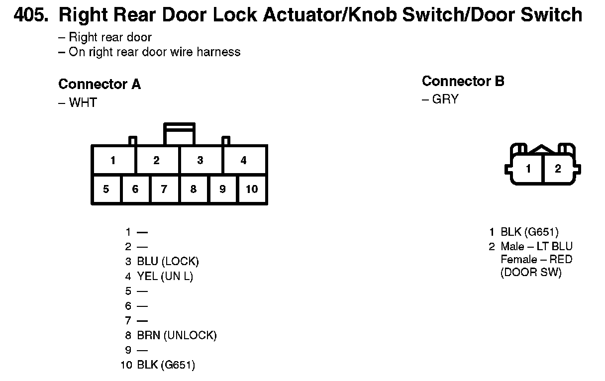 405. Right Rear Door Lock Actuator/Knob Switch/Door Switch: