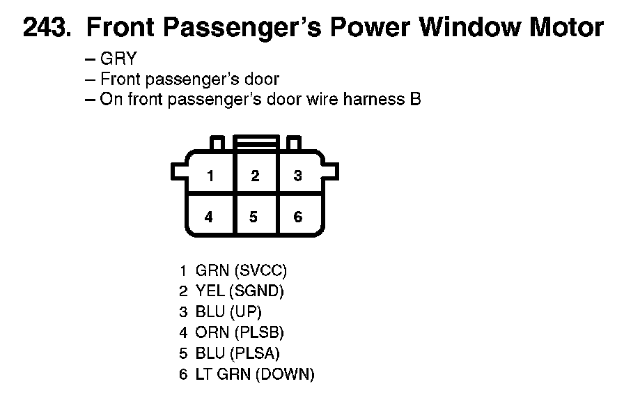 243. Front Passenger's Power Window Motor: