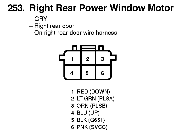253. Right Rear Power Window Motor: