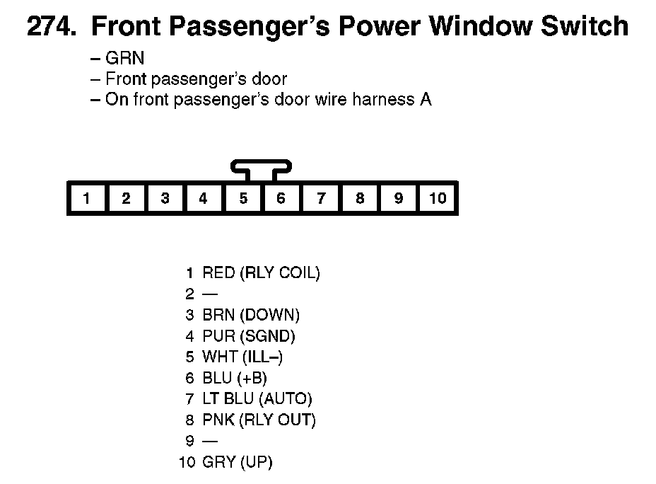 274. Front Passenger's Power Window Switch: