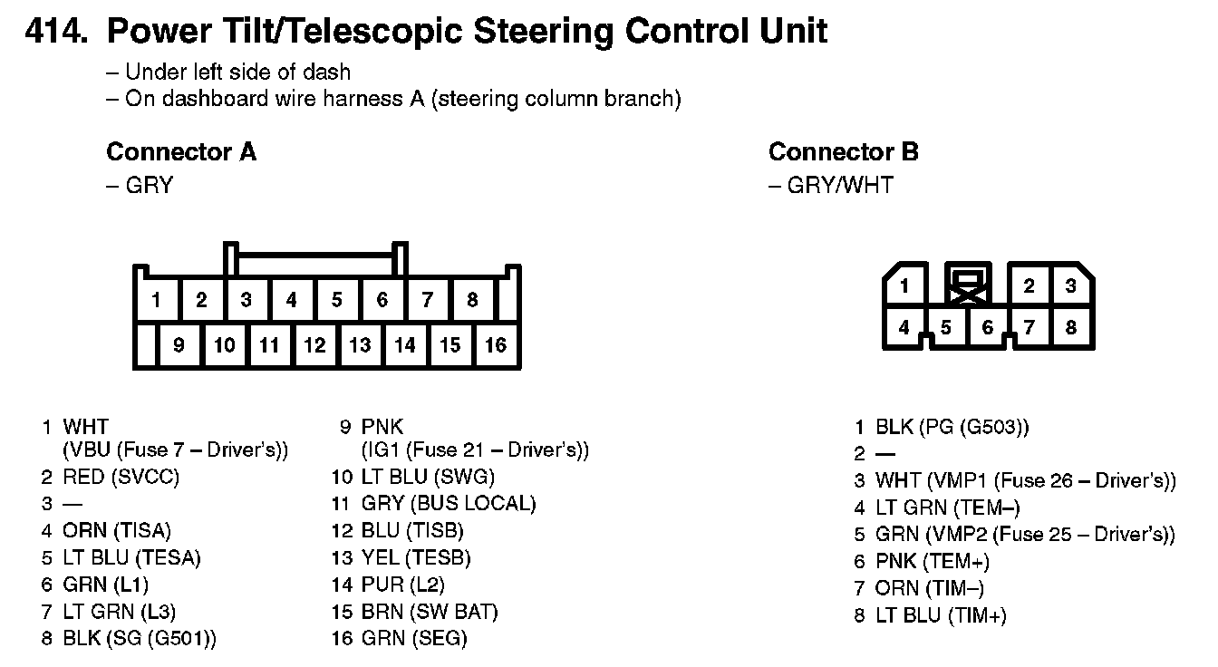 414. Power Tilt/Telescopic Steering Control Unit: