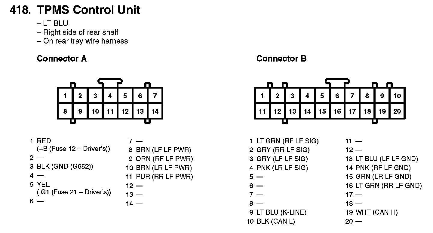 TPMS Control Unit Inputs And Outputs For Connector A (14P):