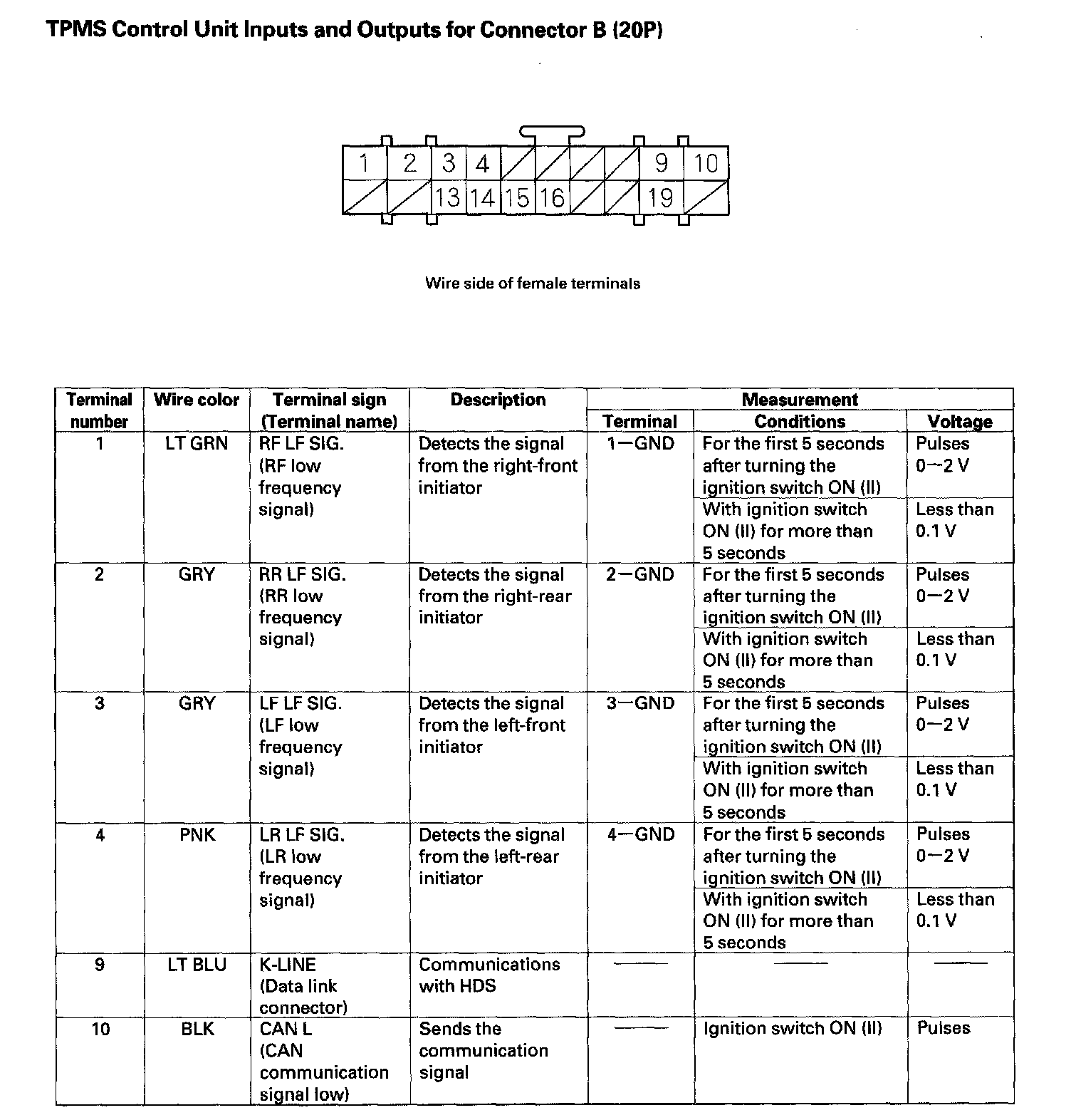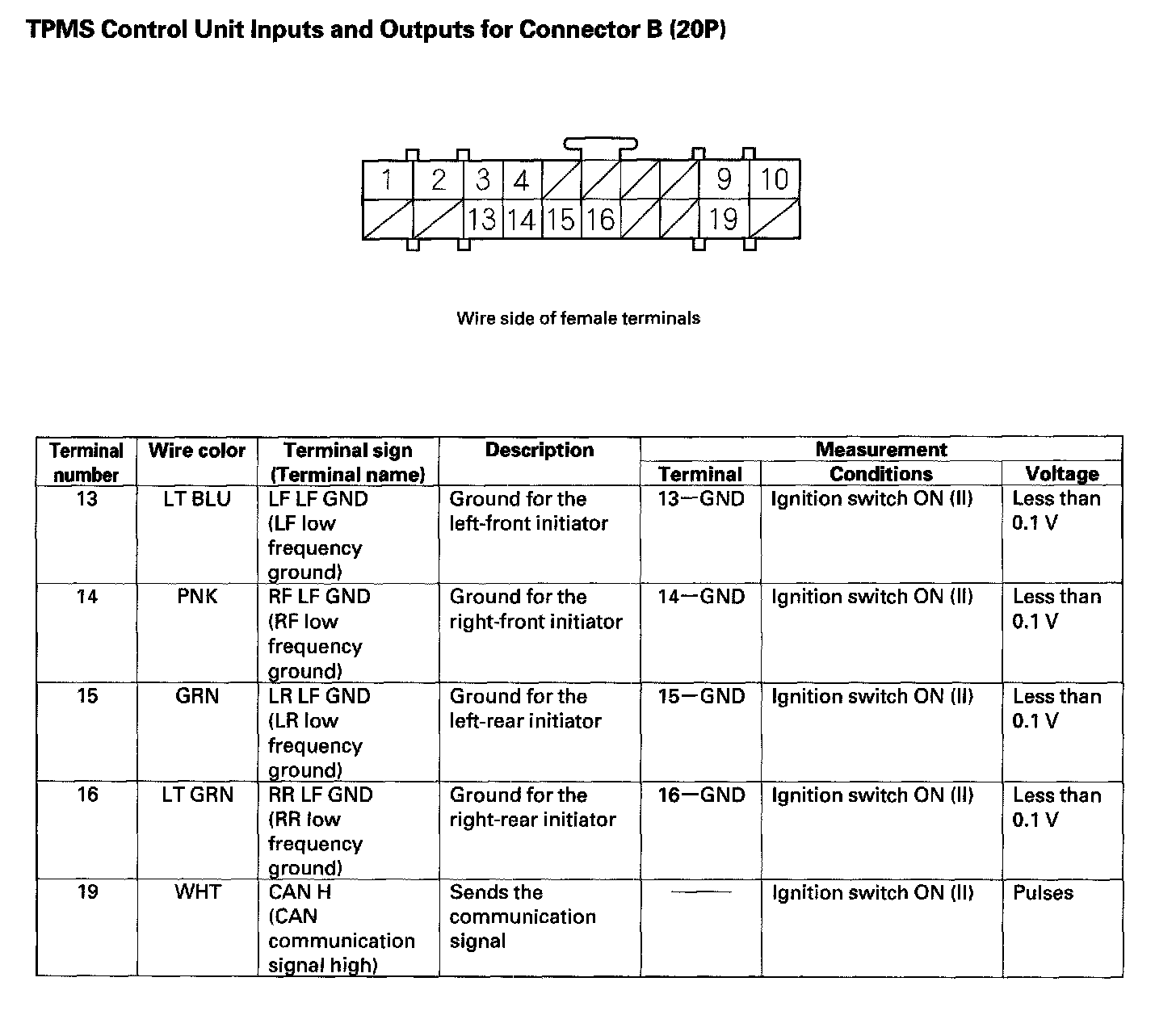 TPMS Control Unit Inputs And Outputs For Connector B (20P) (Part 1):