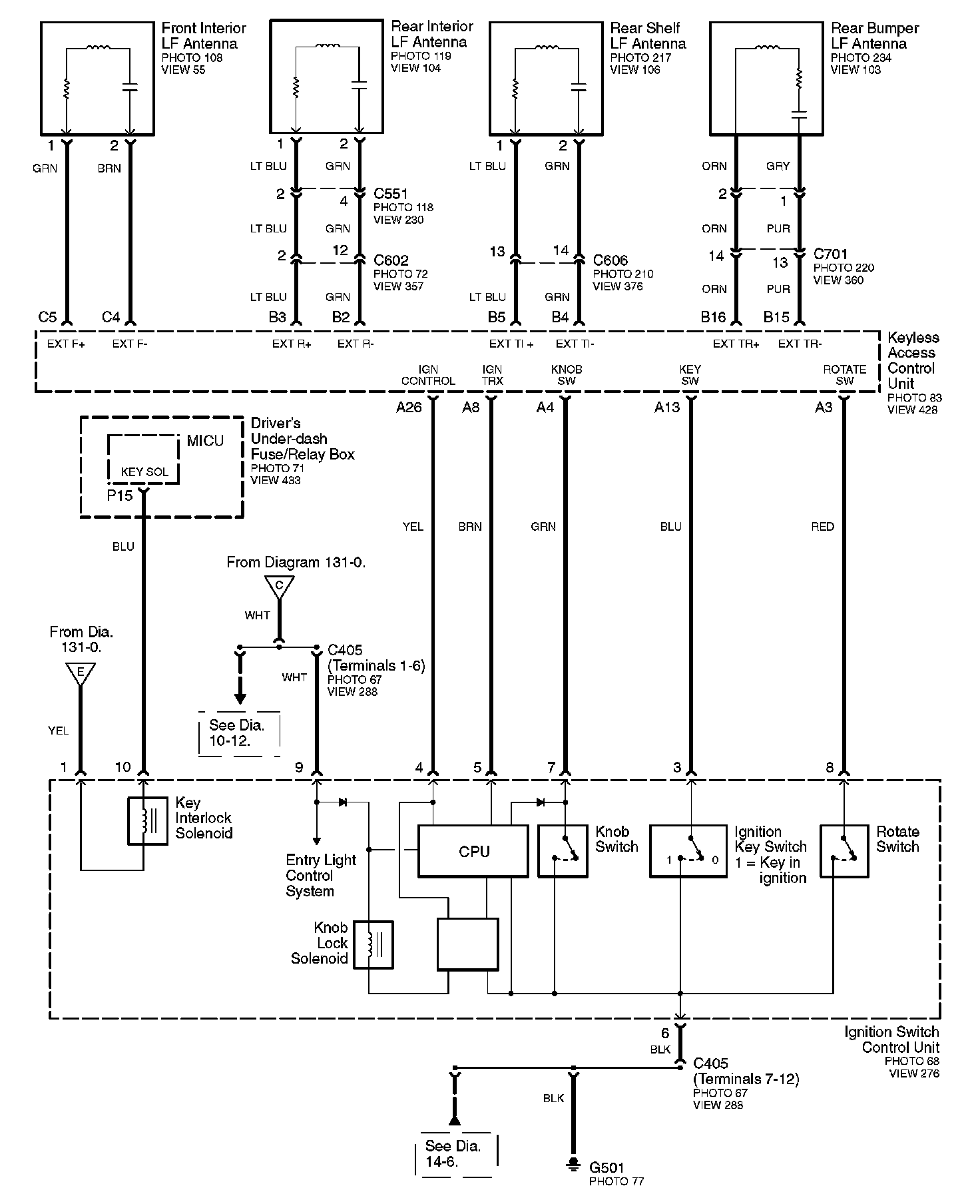 Connector Views: Connector terminal views (references to VIEWS) referred to within these diagrams can be found at Connector Views by View Number. Connector Views By View Number