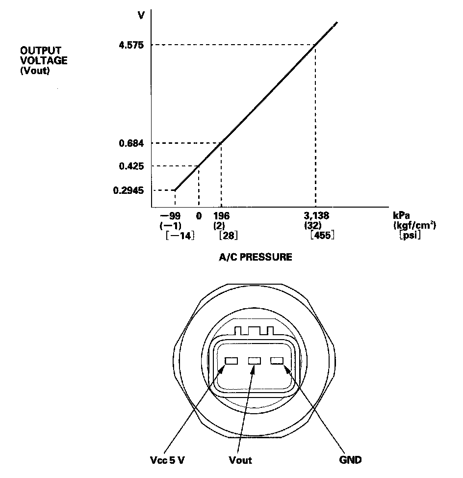 The A/C pressure sensor converts A/C pressure into electrical signals to the PCM.
