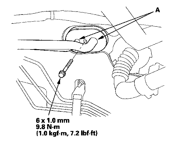 3. Remove the bolt, then disconnect the Ale lines (A) from the evaporator core.