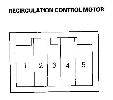 2. Connect battery power to the No. 1 terminal of the recirculation control motor, and ground the No. 2 terminal; the recirculation control motor should run, and stop at Recirculate. If it doesn't, reverse the connections; the recirculation control motor should run, and stop at Fresh.