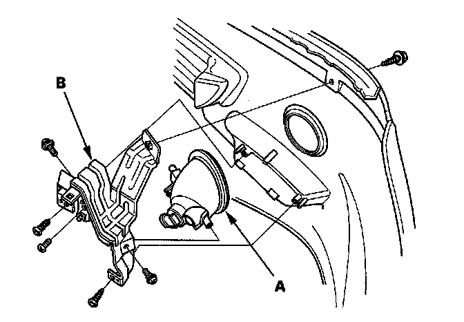 4. Remove the screws, and separate the bracket (B) and fog light.