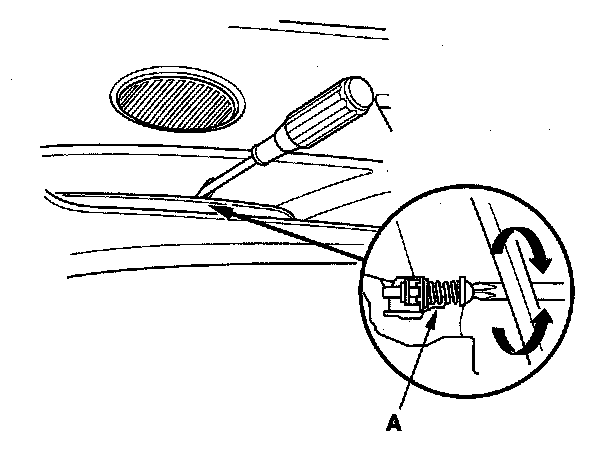 6. After replacement, adjust the fog lights at the adjuster (A) to local requirements.