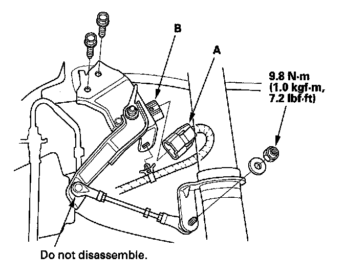2. Disconnect the 3P connector (A) from the suspension stroke sensor (B).