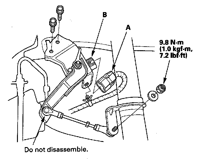 2. Disconnect the 3P connector (A) from the suspension stroke sensor (B).