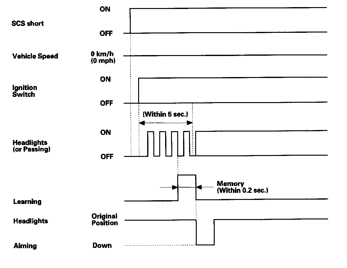 8. Within 5 seconds, turn the headlights or passing switch OFF, then ON and OFF three times repeatedly.