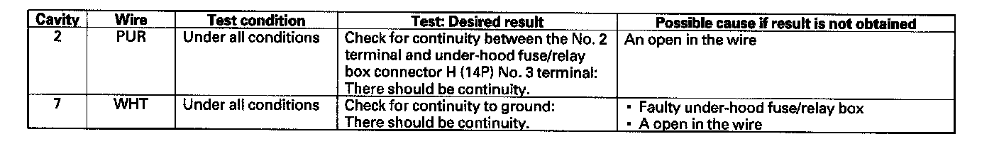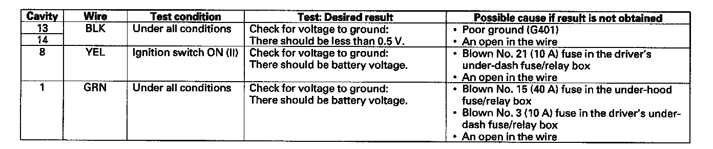 5. Disconnect the 14P connector from the daytime running lights control unit, and make these input tests at the connector.