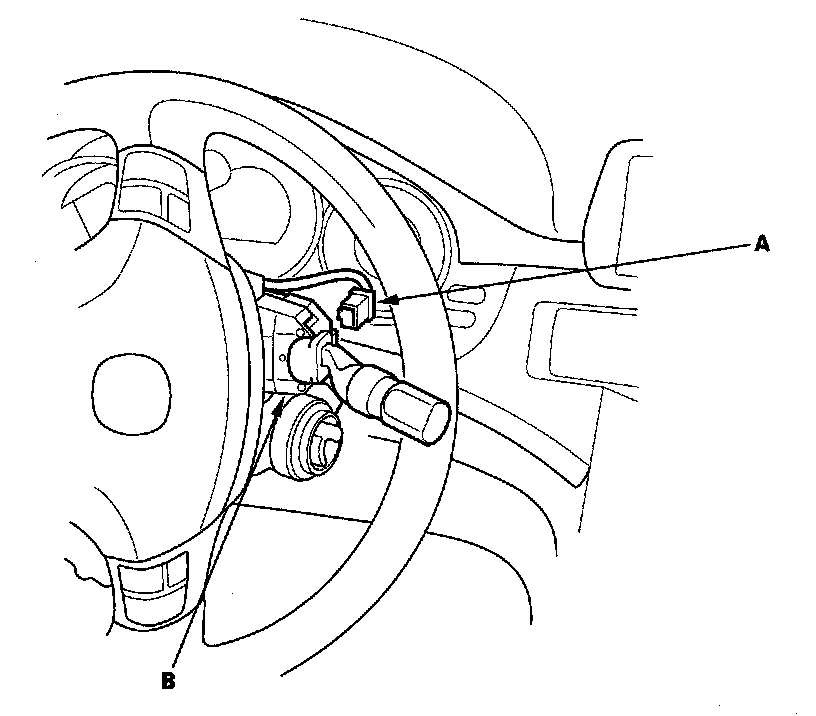 3. Disconnect the combination light switch 12P connector (A) from the wiper/washer switch (B).