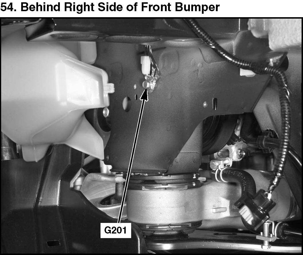 54. Behind Right Side Of Front Bumper: