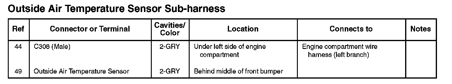 Outside Air Temperature Sensor Sub-harness: