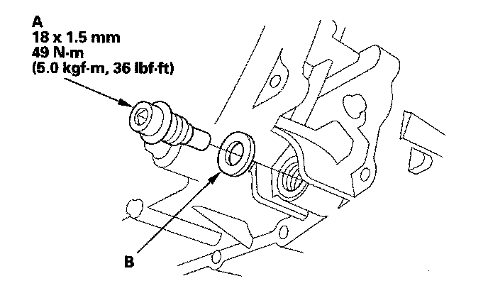 4. Reinstall the drain plug and a new sealing washer (B).