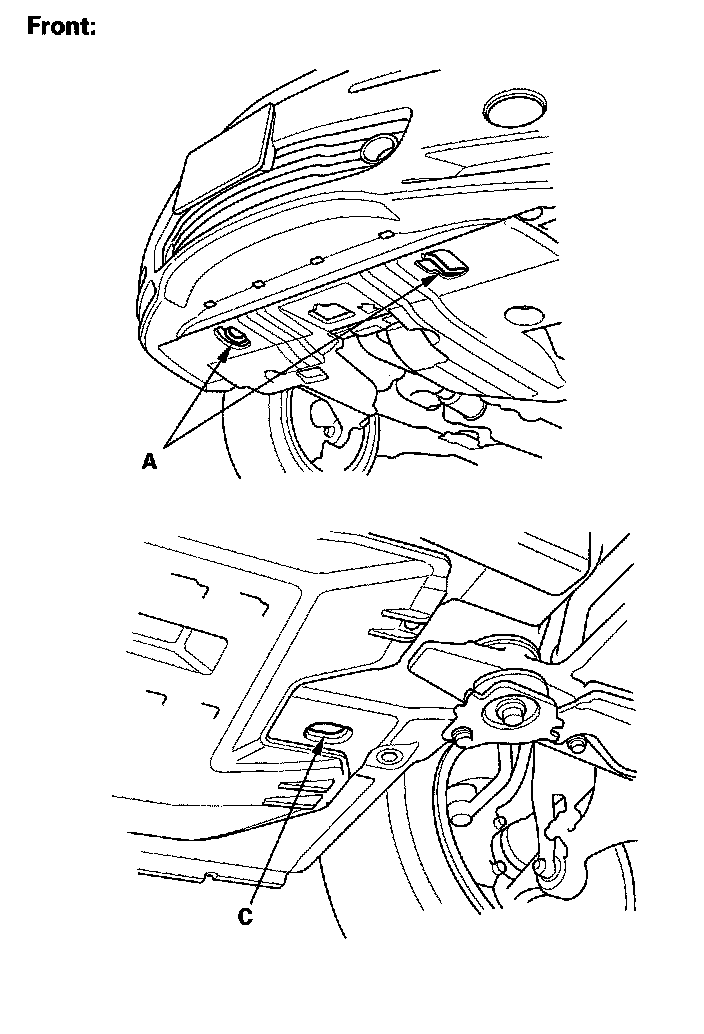1. Remove the cover (A) from the front bumper.