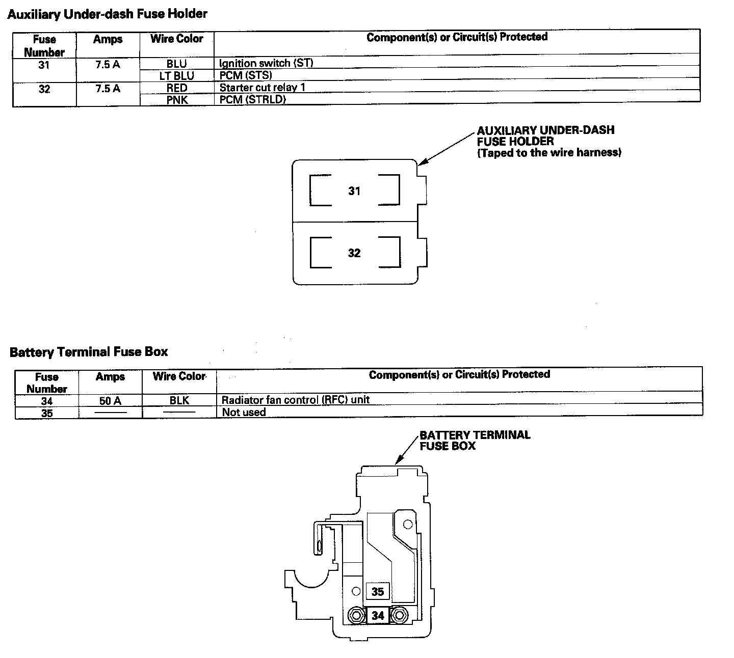 Auxiliary Under-dash Fuse Holder/Battery Terminal Fuse Box: