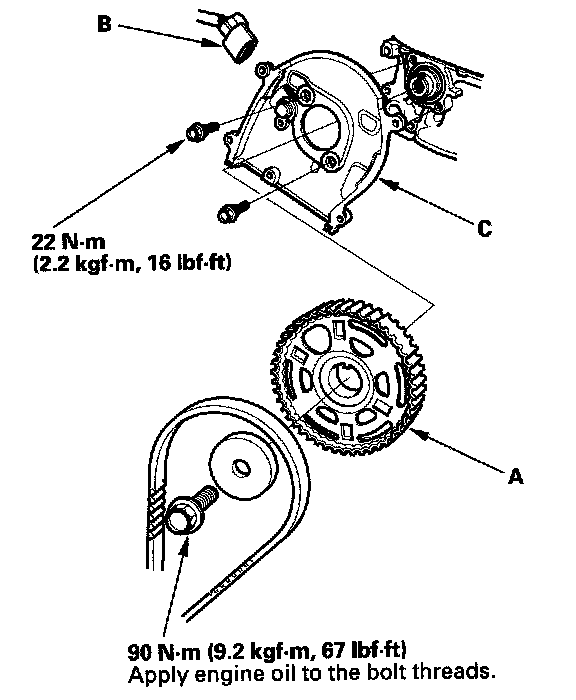6. Disconnect the CMP sensor connector (B), then remove the back cover (C).
