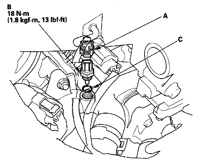 5. Install the parts in the reverse order of removal with a new O-ring (C). Then refill the radiator with engine coolant.
