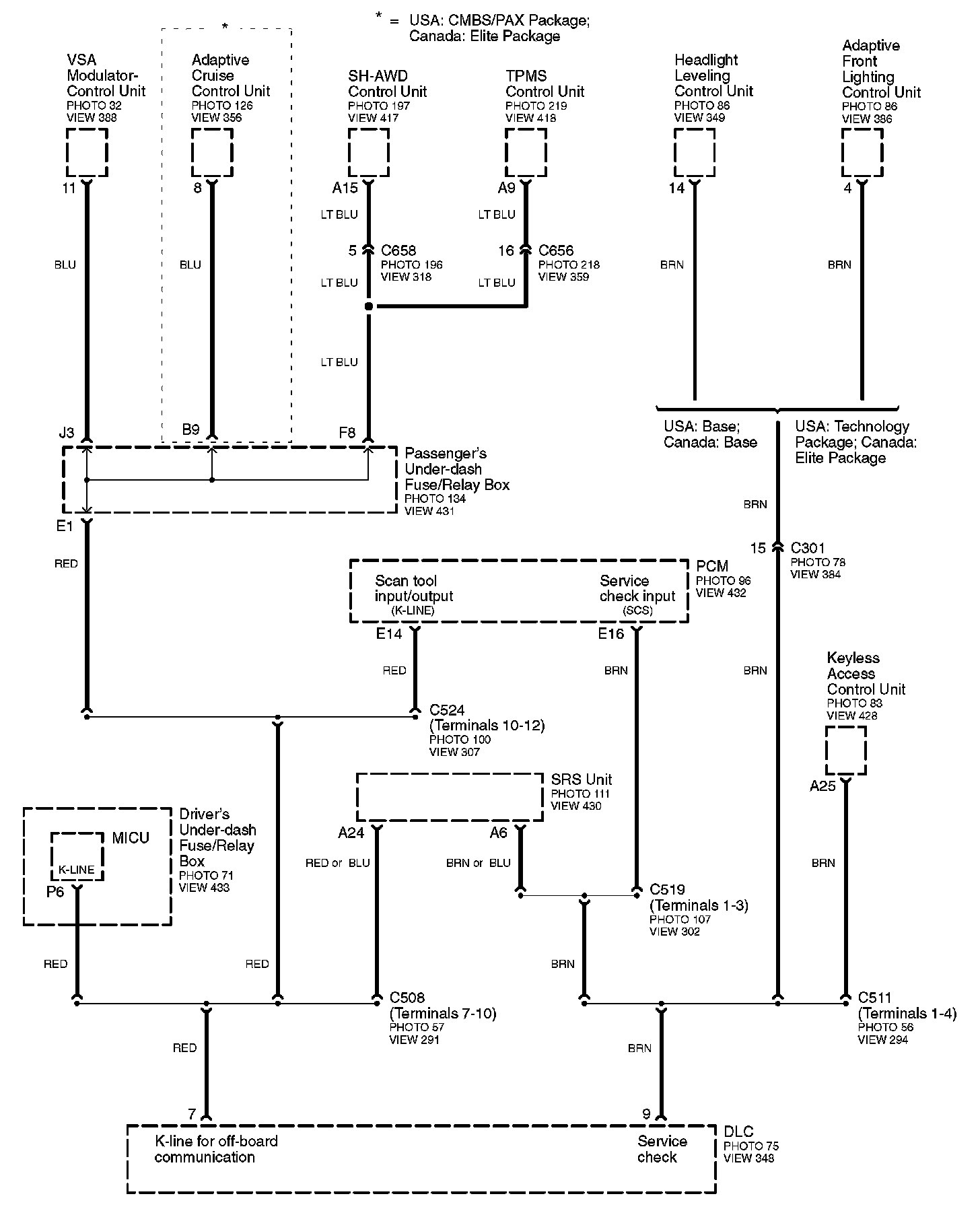 Connector Views: Connector terminal views (references to VIEWS) referred to within these diagrams can be found at Connector Views by View Number. Connector Views By View Number