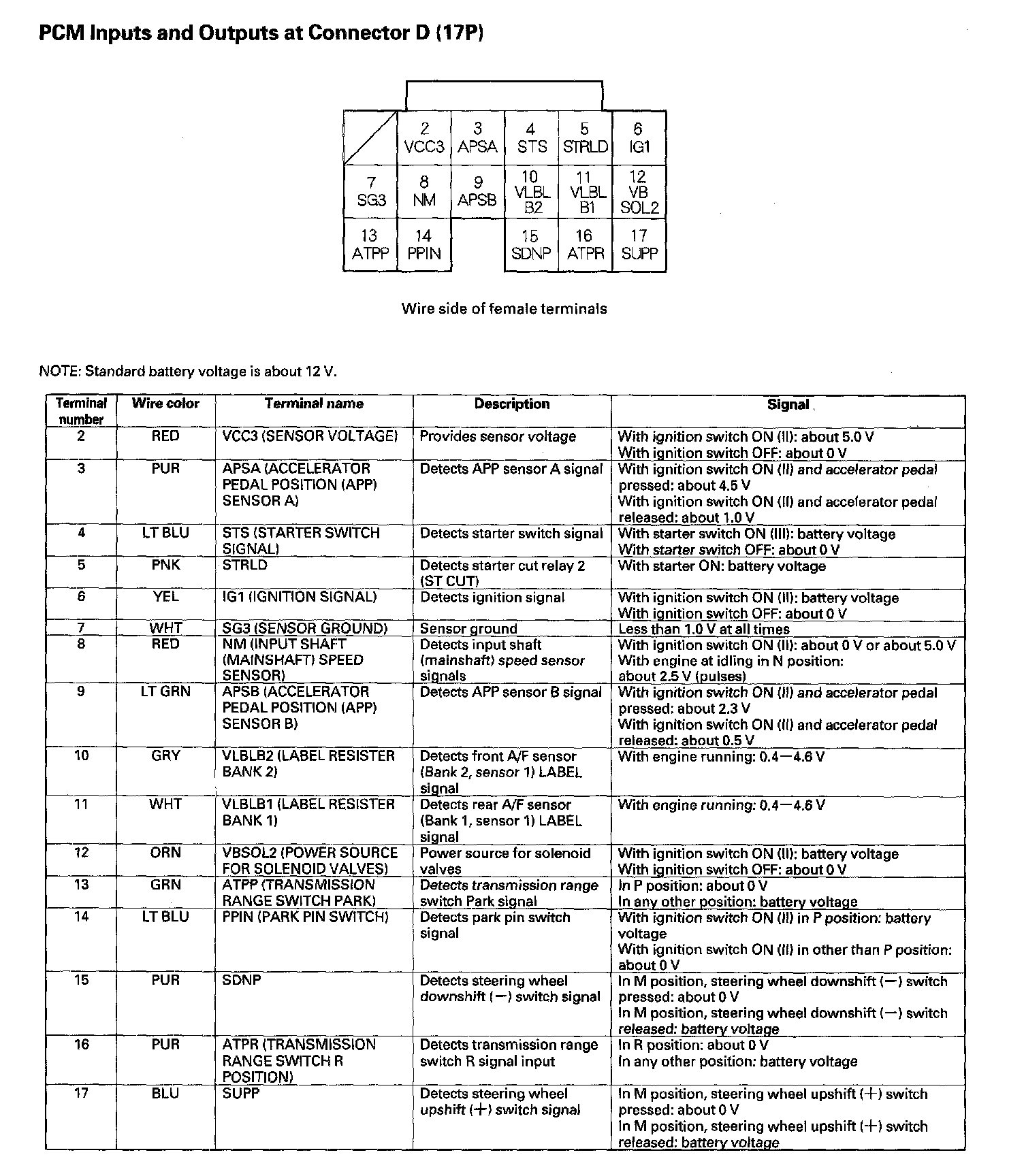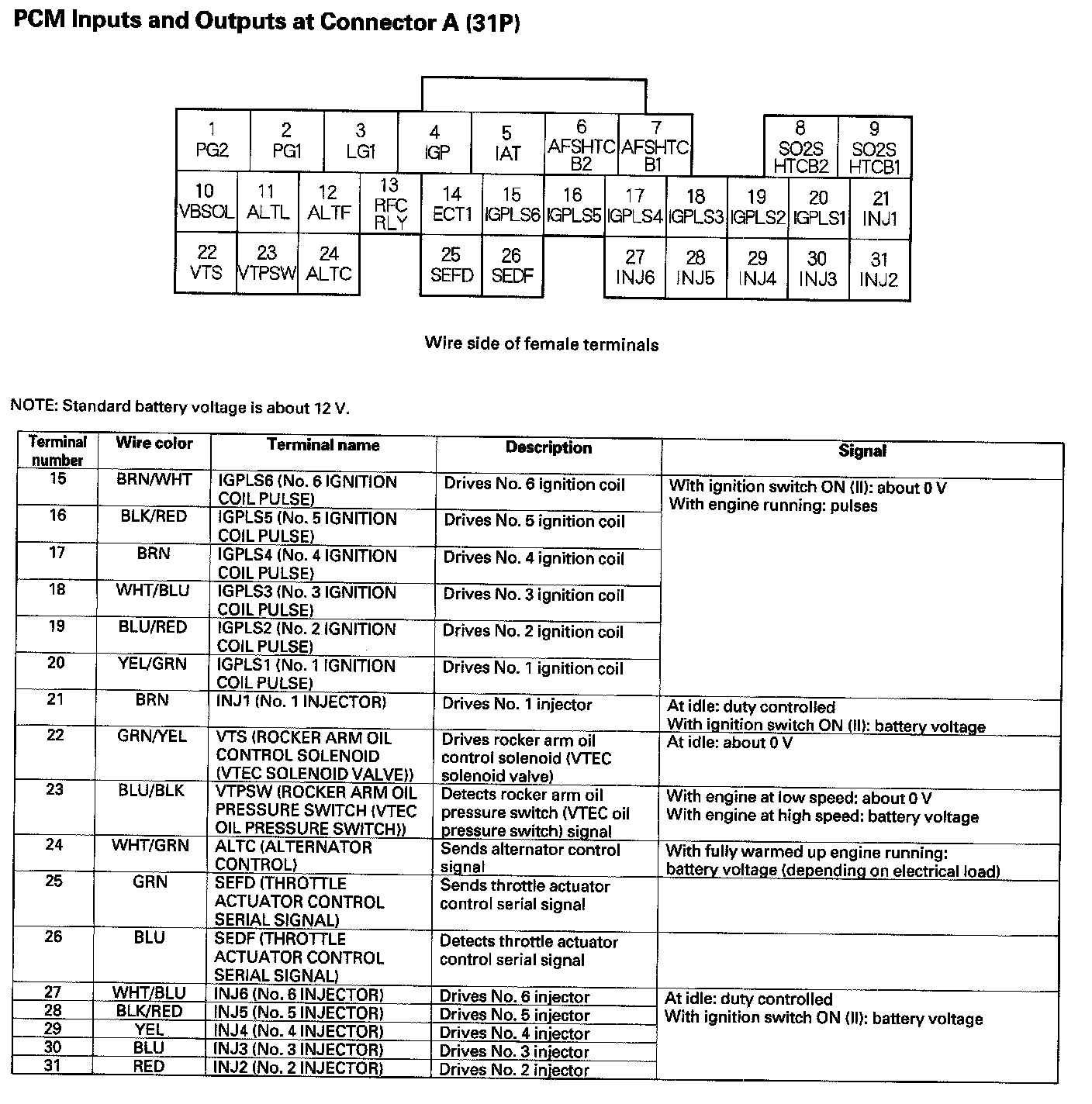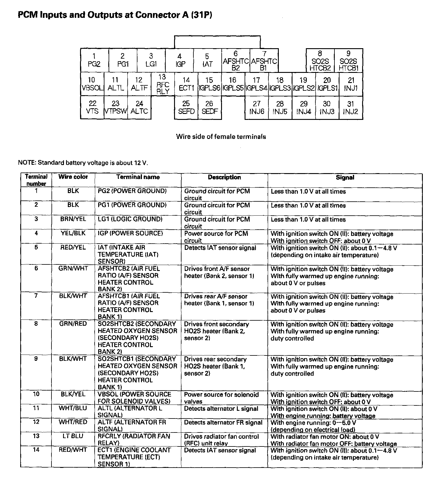 PCM Inputs And Outputs At Connector A (31P) Part 1: