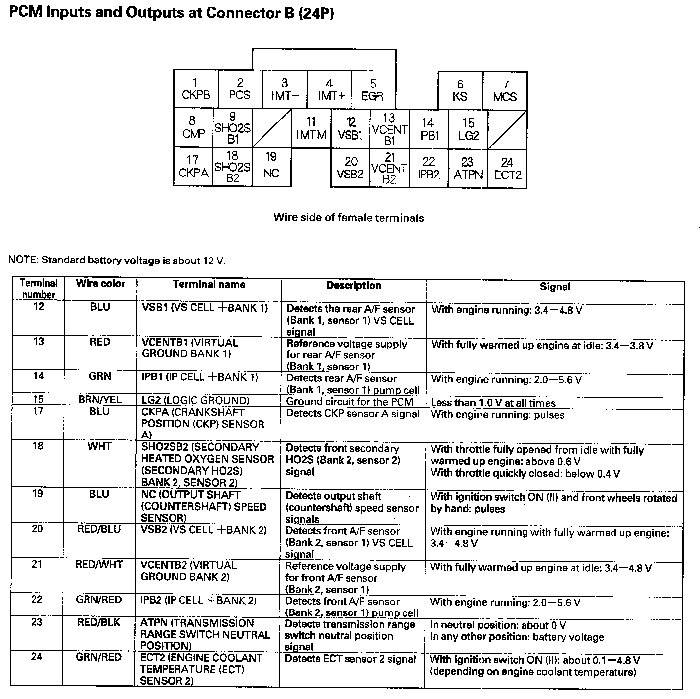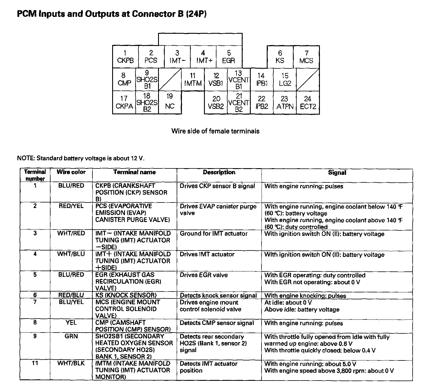 PCM Inputs And Outputs At Connector B (24P) Part 1: