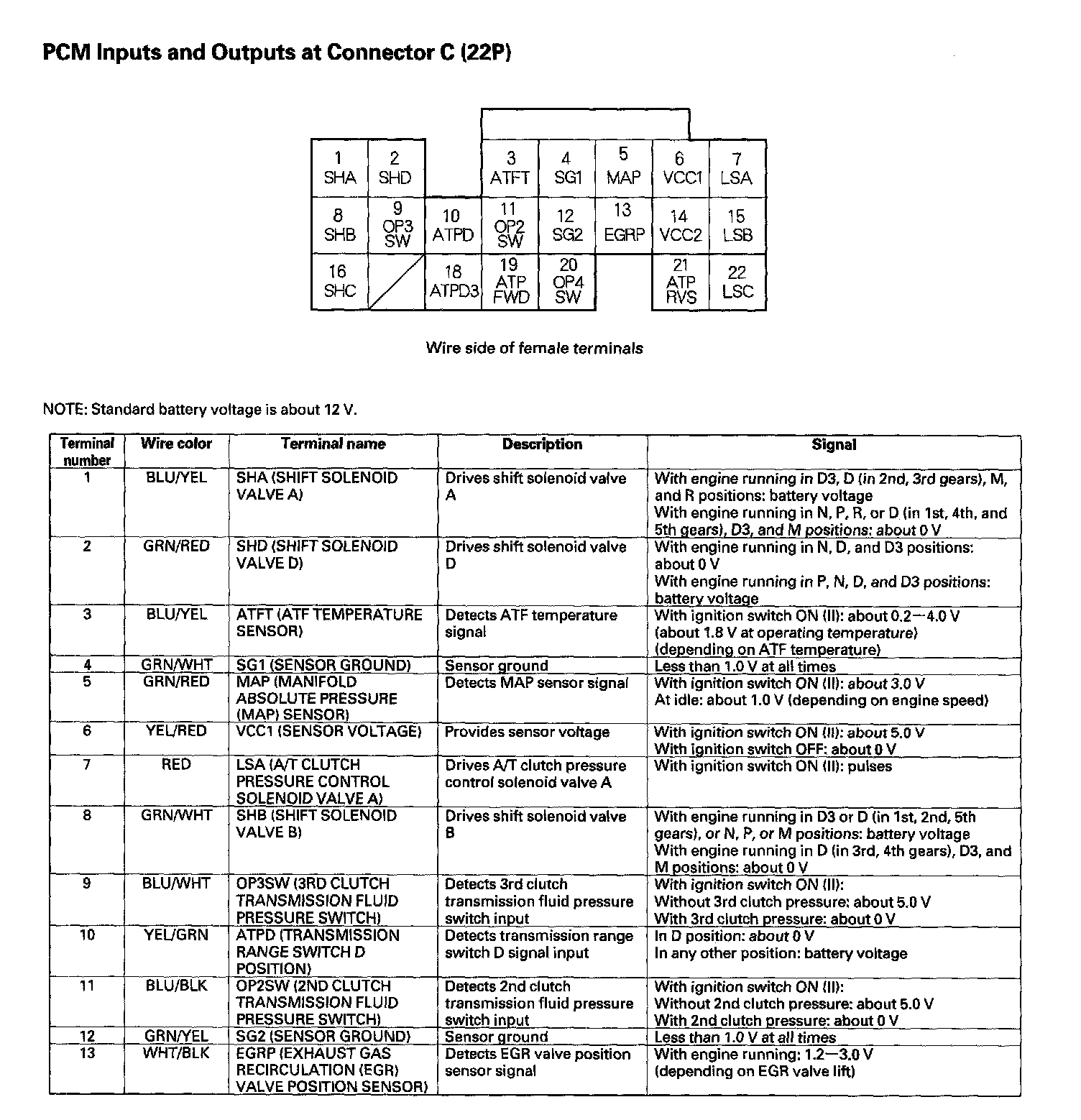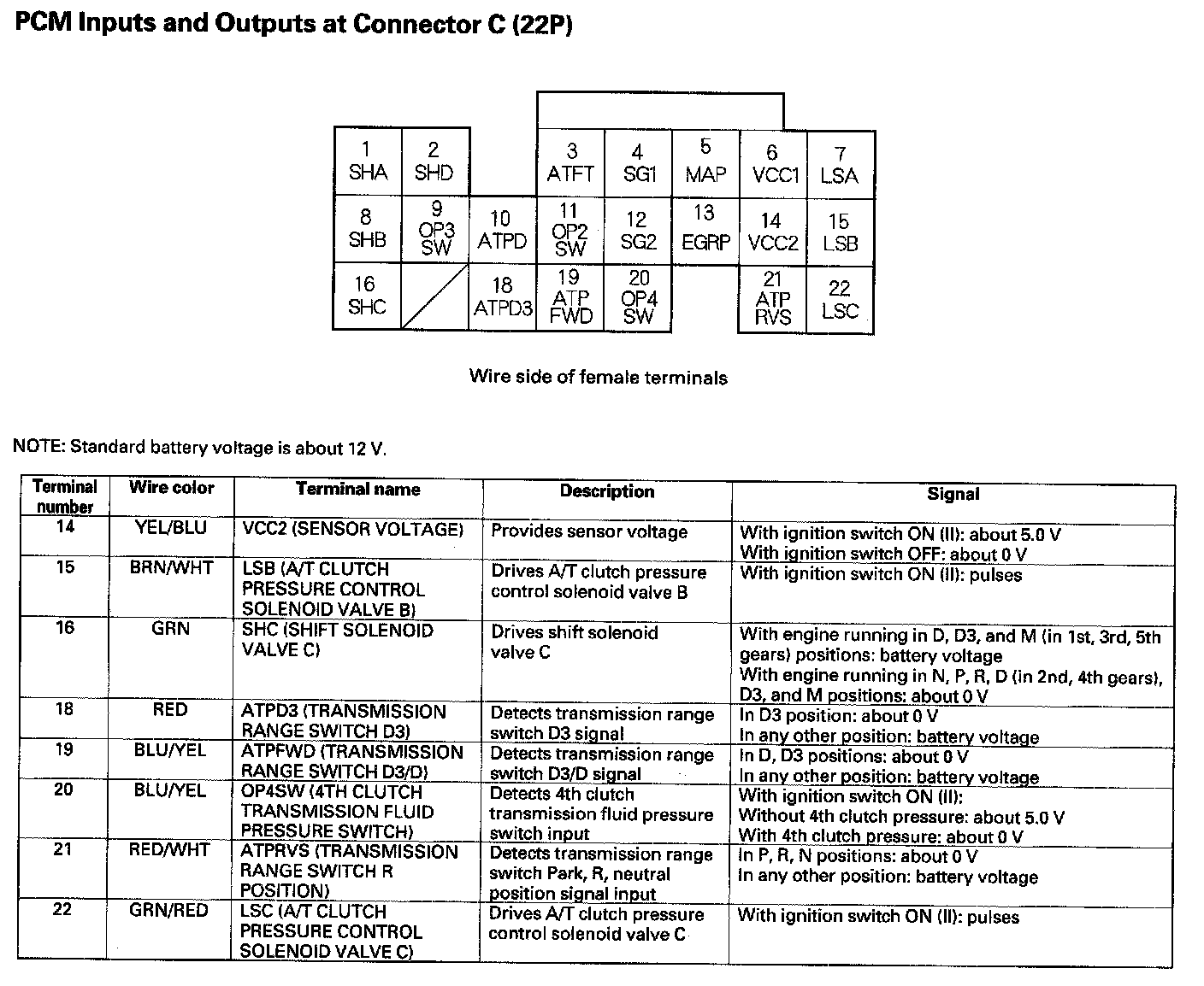 PCM Inputs And Outputs At Connector C (22P) Part 1: