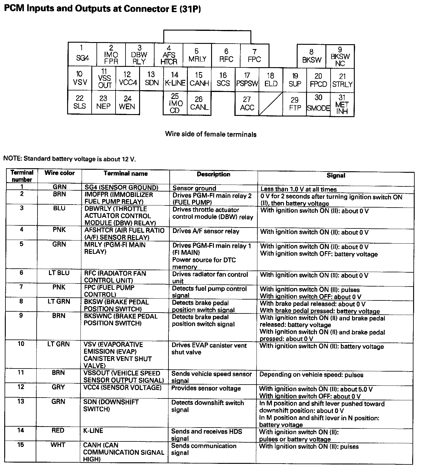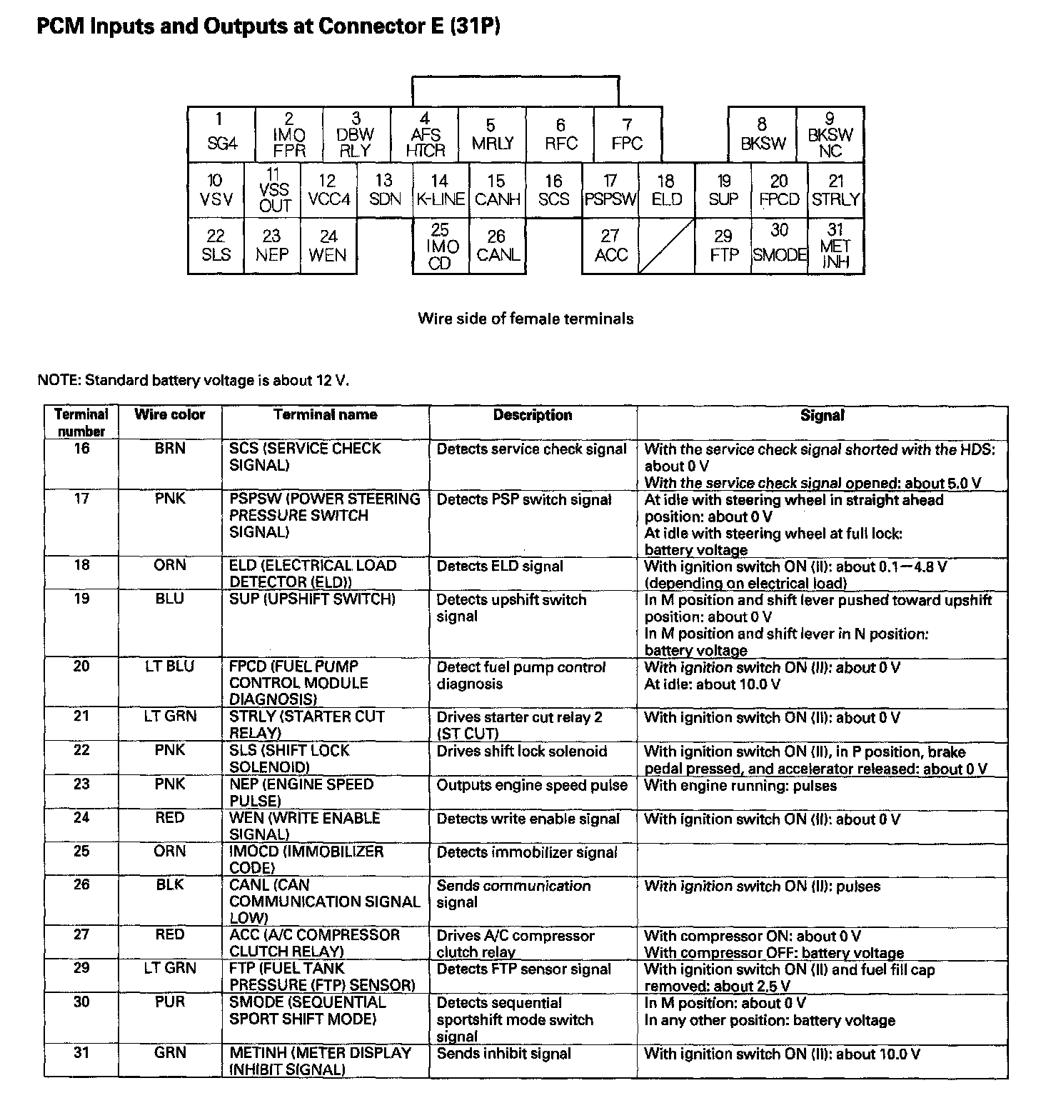 PCM Inputs And Outputs At Connector E (31P) Part 1: