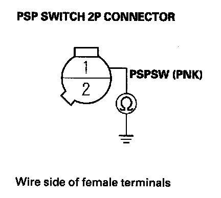 11. Check for continuity between PSP switch 2P connector terminal No. 1 and body ground.