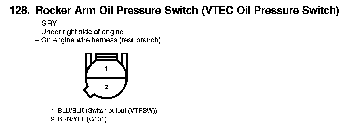 128. Rocker Arm Oil Pressure Switch (VTEC Oil Pressure Switch):