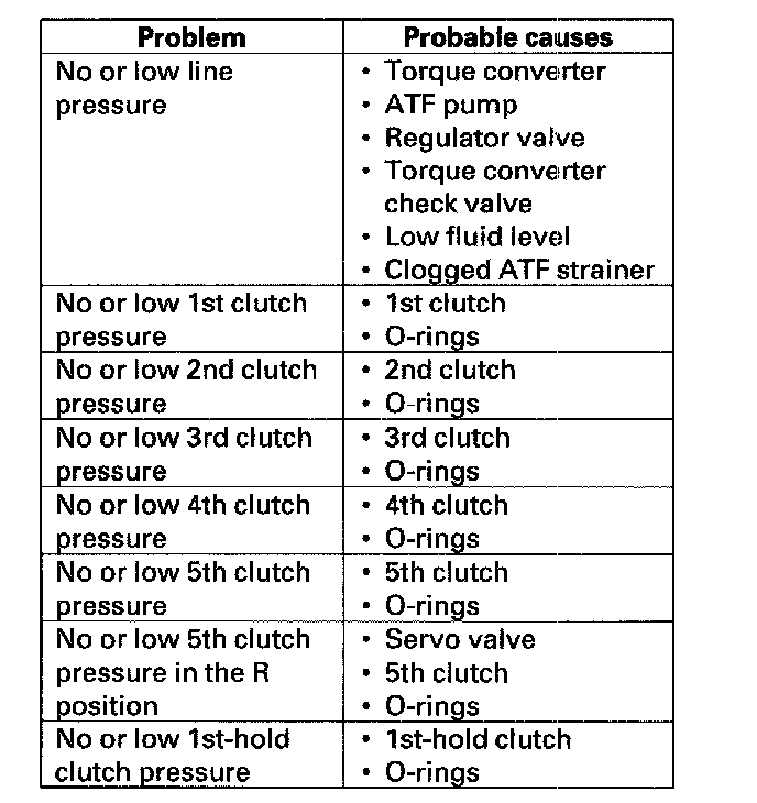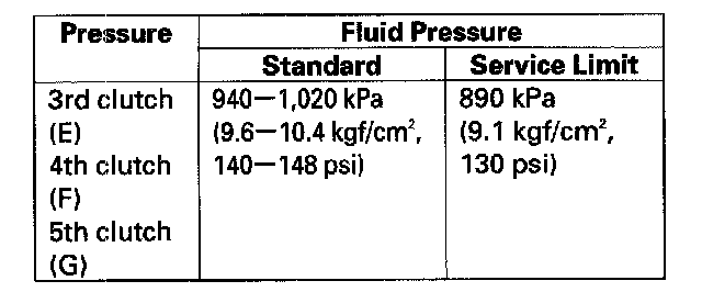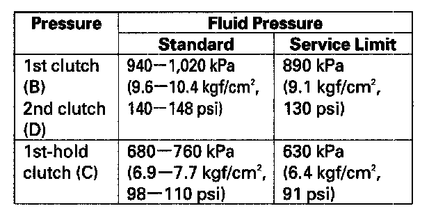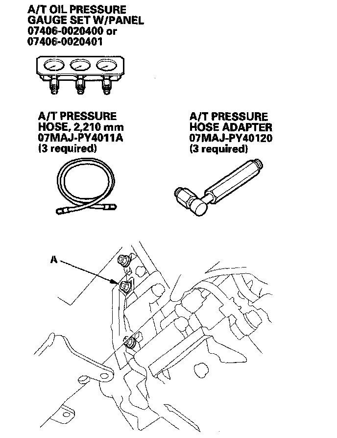 - A/T clutch pressure gauge set 07406-0020400 or 07406-0020401