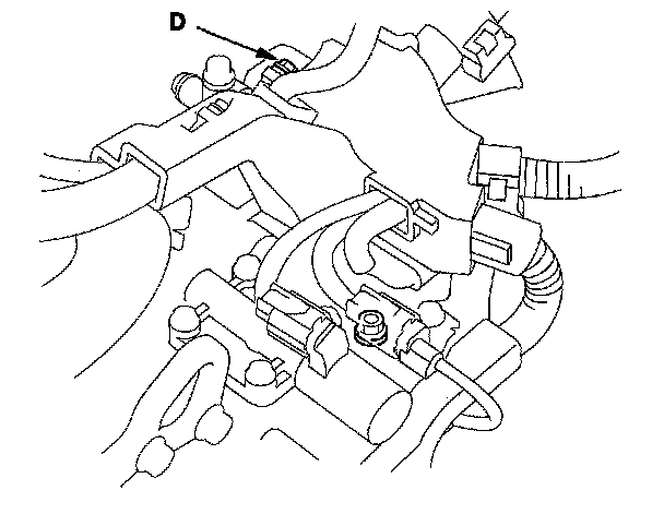 13. Remove the air intake duct and air cleaner housing, and connect the oil pressure gauge to the 2nd clutch pressure inspection port (D). Then temporarily install the air cleaner housing and air intake duct.