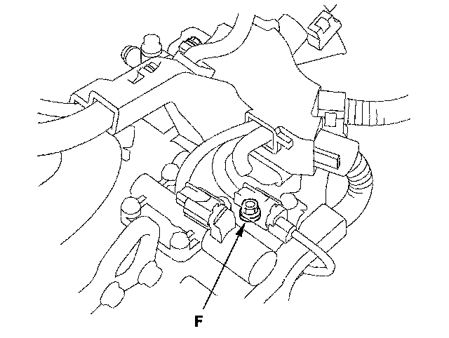 20. Connect the oil pressure gauge to the 4th clutch pressure inspection port (F).