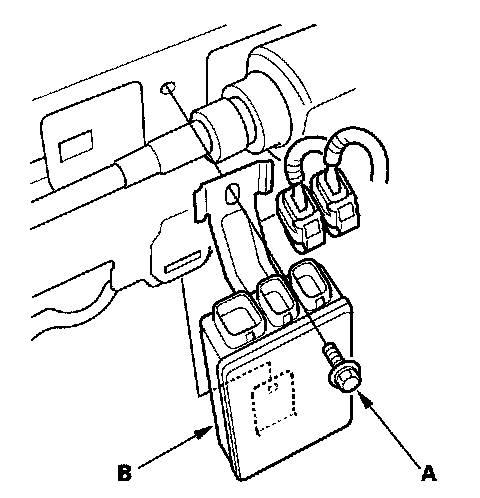 4. Disconnect the connectors from the front passenger's weight sensor unit. Remove the mounting bolt (A) and the front passenger's weight sensor unit (B) from the seat riser.