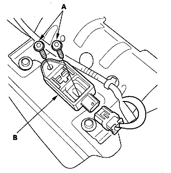 5. Using a TORX T30 bit, remove the TORX bolts (A), then remove the rear safing sensor (B).