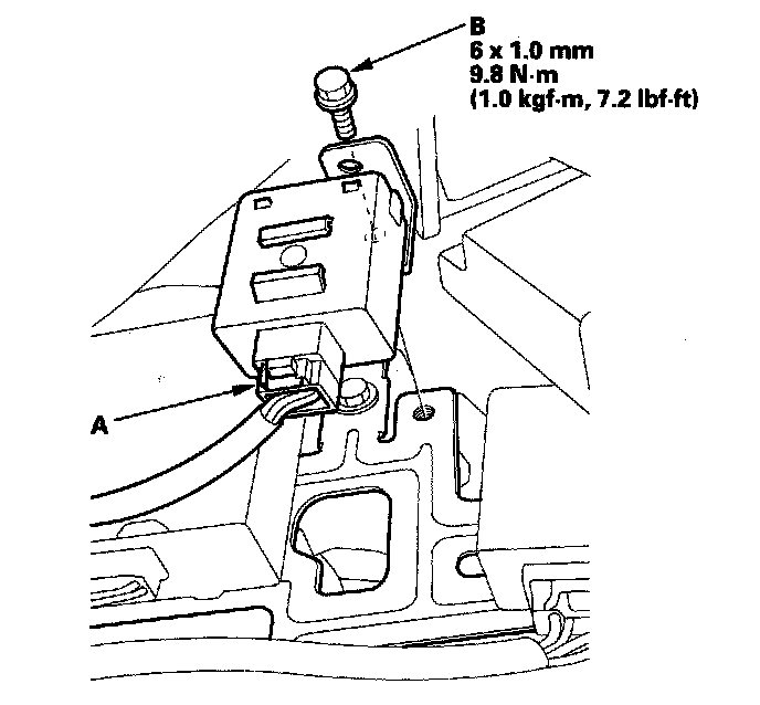 2. Disconnect the connector (A) from the ECPS control unit, and remove the bolt (B).