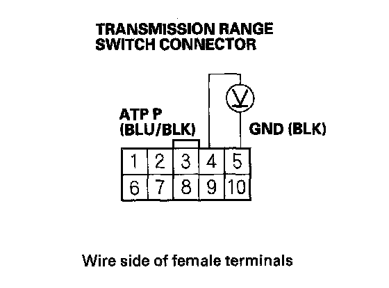 23. Measure voltage between transmission range switch connector terminals No. 4 and No. 5.