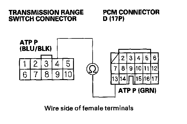 27. Check for continuity between PCM connector terminal D13 and transmission range switch connector terminal No. 4.