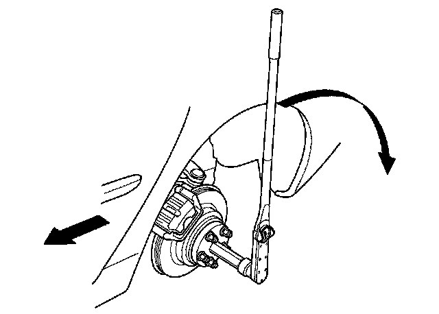 7. Install a torque wrench on the special tool as shown on the HDS. Write down the torque value while slowly rotating the rear hub with the torque wrench as shown. (Turn the hub no more than 90 degrees in 7 to 10 seconds.)