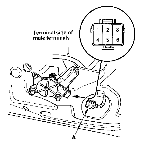 2. Disconnect the 6P connector (A) from the power window motor.