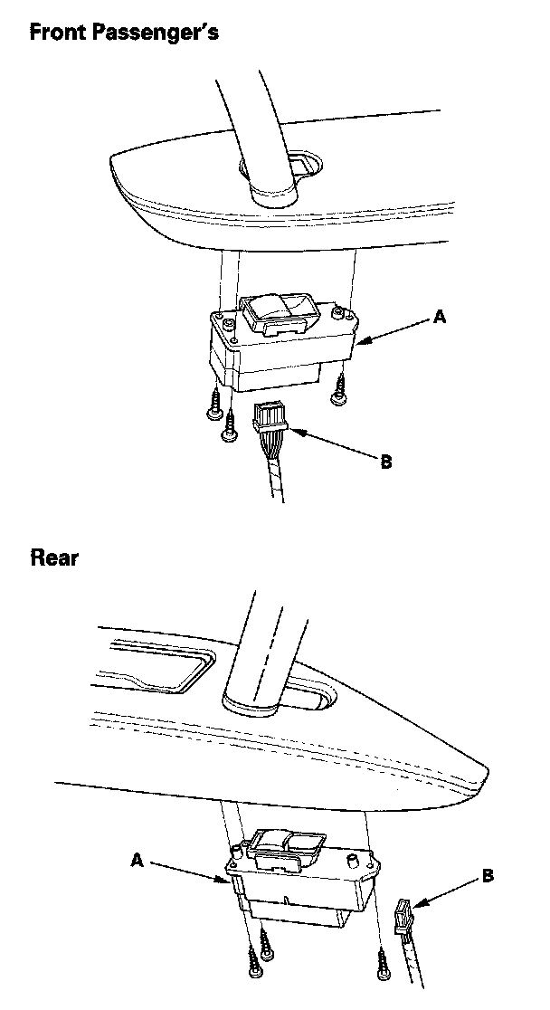 2. Disconnect the 10P (or 14P)* connector (A) from the passenger's power window switch (B).