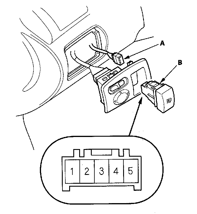 2. Disconnect the 5P connector (A) from the headlight washer switch (B).