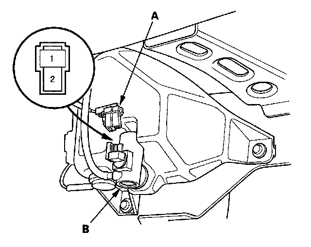 2. Disconnect the 2P connector (A) from the washer motor (B).