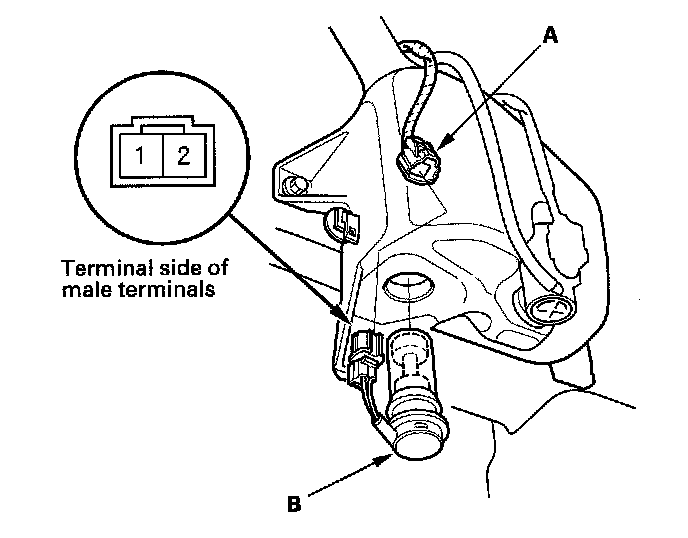 2. Disconnect the 2P connector (A) from the washer fluid level switch (B).