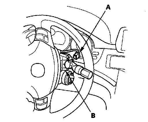 3. Disconnect the combination light switch 12P connector, and dashboard wire harness 8P connector (A) from the wiper/washer switch (B).