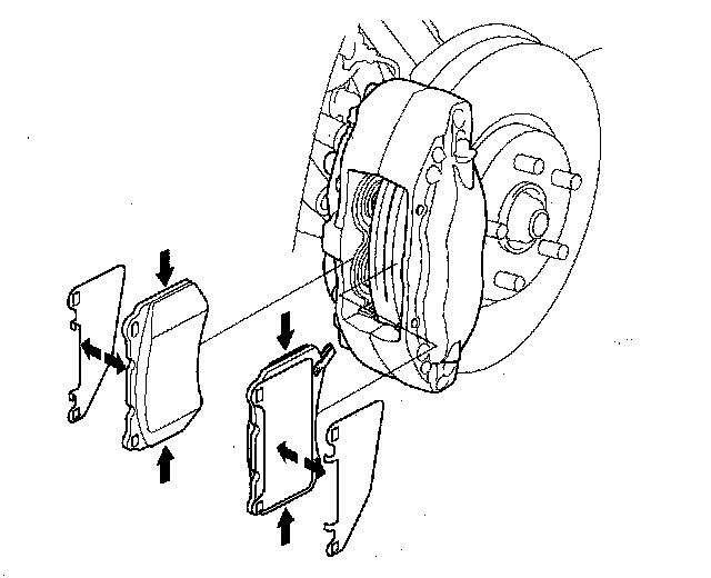 NOTE: Engagement of the brakes may require a greater pedal stroke immediately after the brake pads have been replaced as a set. Several applications of the brake pedal will restore the normal pedal stroke.