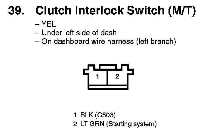 39. Clutch Interlock Switch (M/T):